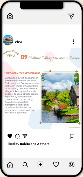 Created a curated Instagram carousel for Vivu Boutique Travel Agency, aimed at inspiring Asian travelers to explore Europe’s most picturesque villages. The design blends romantic visuals, refined typography, and concise storytelling to highlight must-visit destinations known for their charm, culture, and scenic beauty. This carousel serves as both travel inspiration and a brand touchpoint for Vivu’s boutique travel experience.